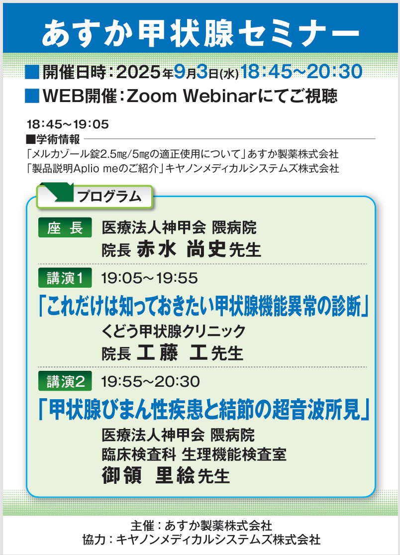「これだけは知っておきたい甲状腺機能異常の診断」というテーマで講演を行いました。